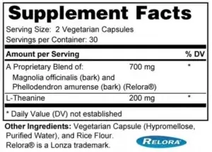 - Proprietary Blend (Relora – Magnolia Bark and Phellodendron) (700 milligrams): This unique combination has been shown to effectively support the body’s response to stress, reducing tension and mitigating stress-related eating by maintaining healthy cortisol levels.