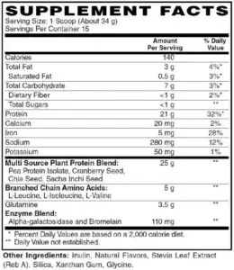 - 21 grams aof Protein: A robust blend of pea protein isolate, cranberry seed, chia seed, and sacha inchi seed, providing a complete amino acid profile for comprehensive muscle support and recovery.